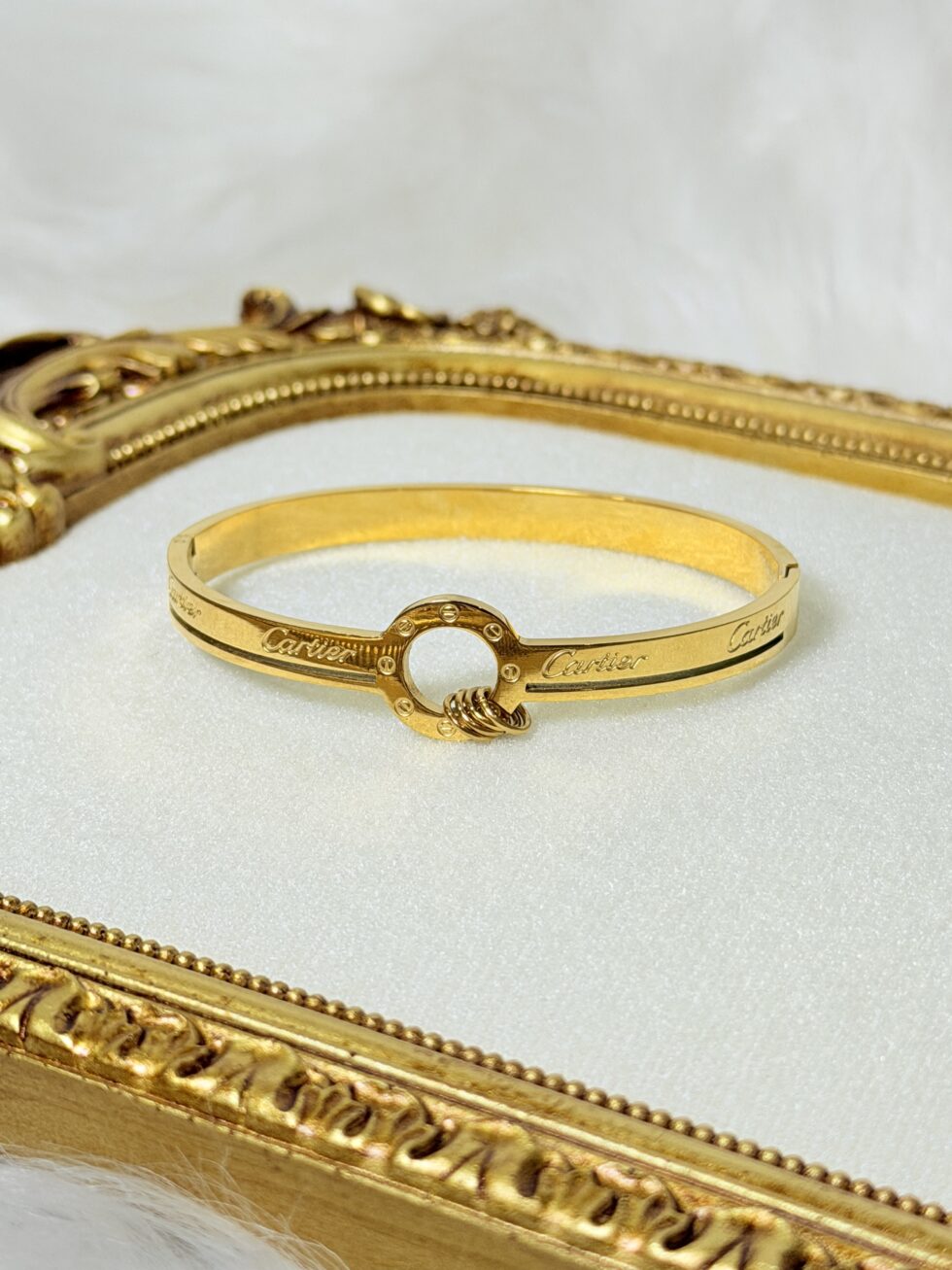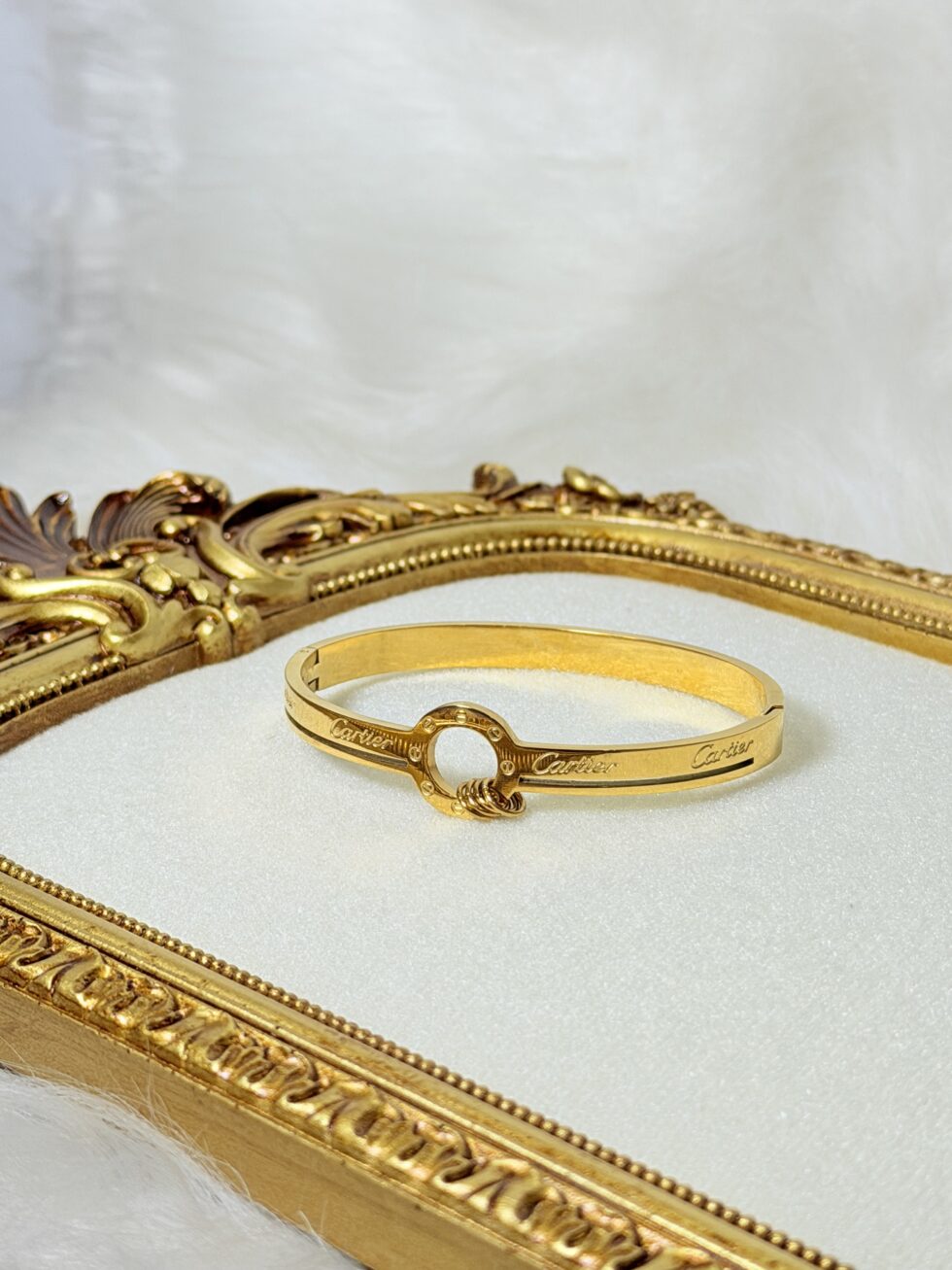 Elegant and timeless, this Cartier Gold Bangle features a sleek, dainty design perfect for everyday wear or special occasions. Chic, versatile, and effortlessly sophisticated.